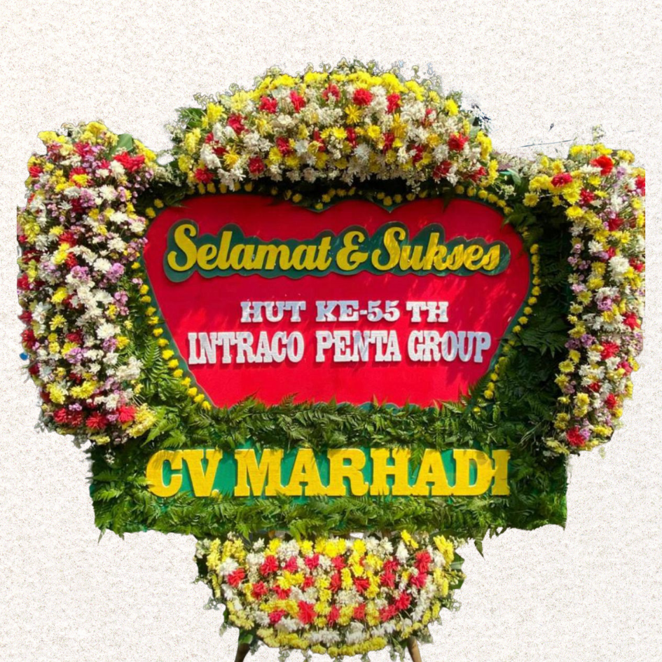 Karangan bunga standing atau papan ucapan, dikirim cepat ke rumah duka, pernikahan, atau grand opening.